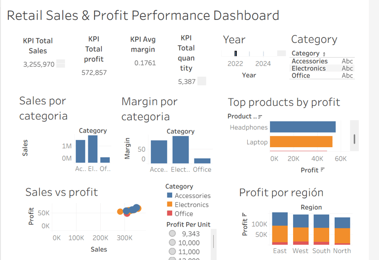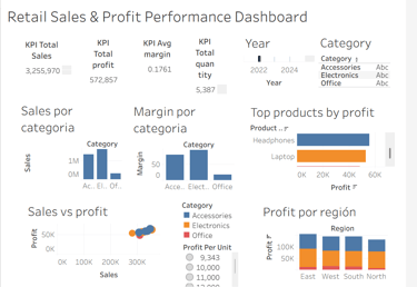 Análisis de desempeño de ventas en retail para identificar drivers de rentabilidad, patrones regionales y oportunidades de optimización mediante análisis exploratorio en Python y visualización ejecutiva en Tableau.